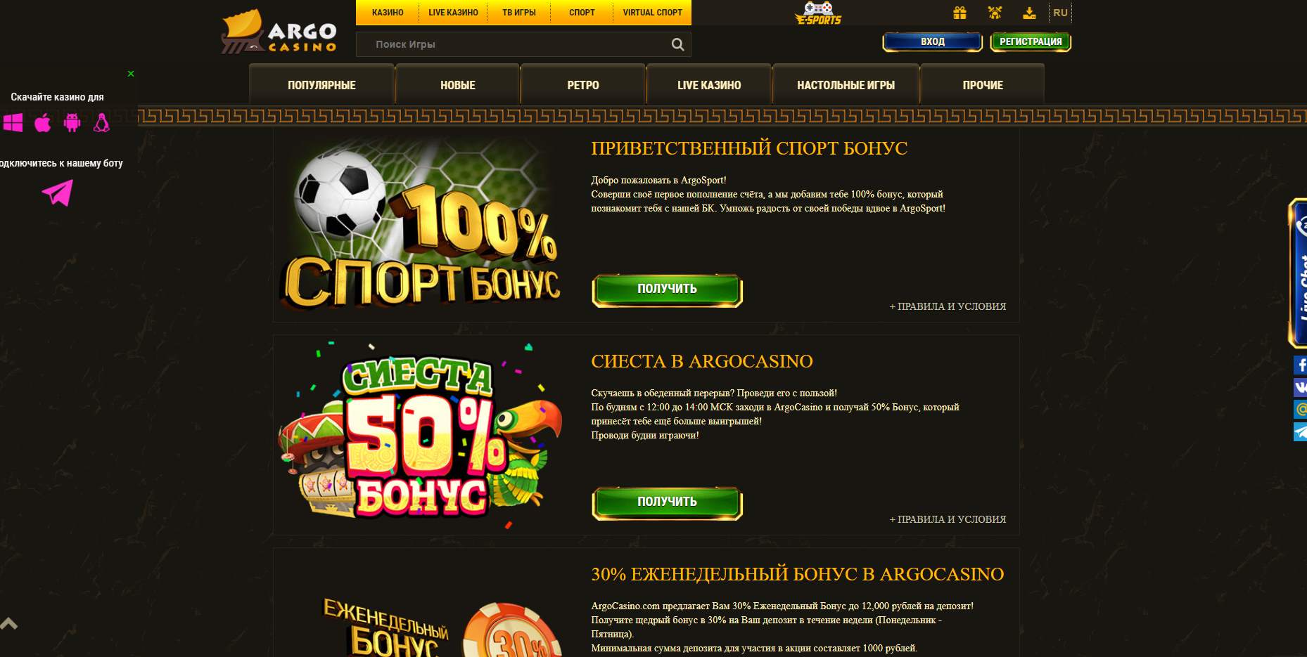 Argo casino (Арго казино) обзор и без депозитный бонус