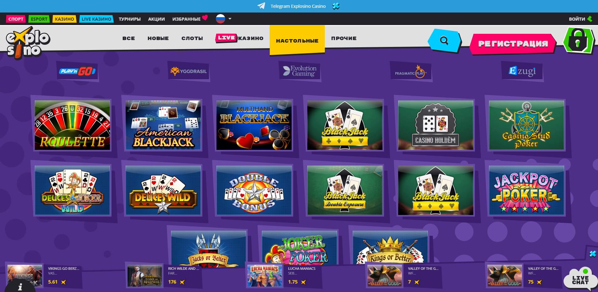 Присутствуют на сайте и Live-игры, они даже выделены в отдельный сегмент. И это не удивительно, ведь в последний год live-развлечения буквально перевернули игровую индустрию. Вся суть в том, что за раздачу отвечает живой человек, а вы видите качественную трансляцию, где профессиональный дилер заменяет бездушный Генератор Случайных Чисел. Обязательно попробуйте.