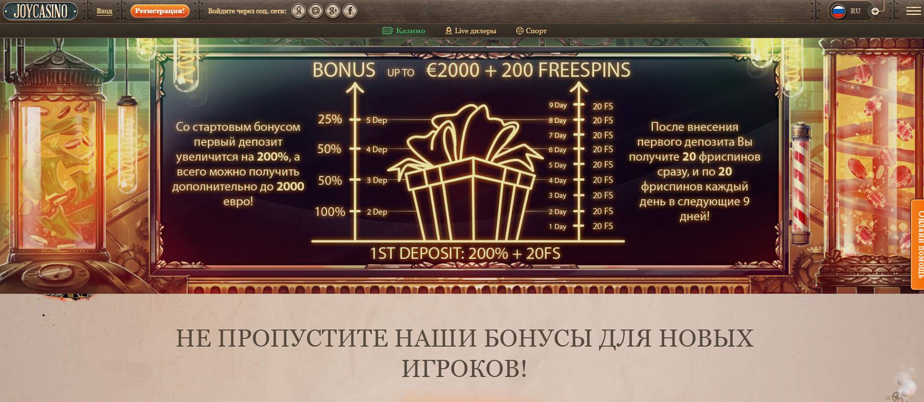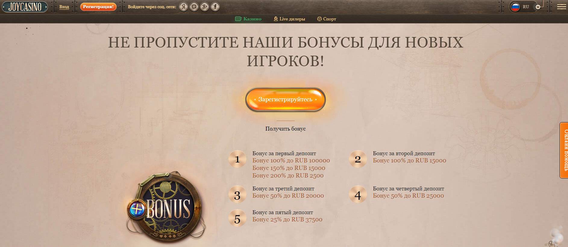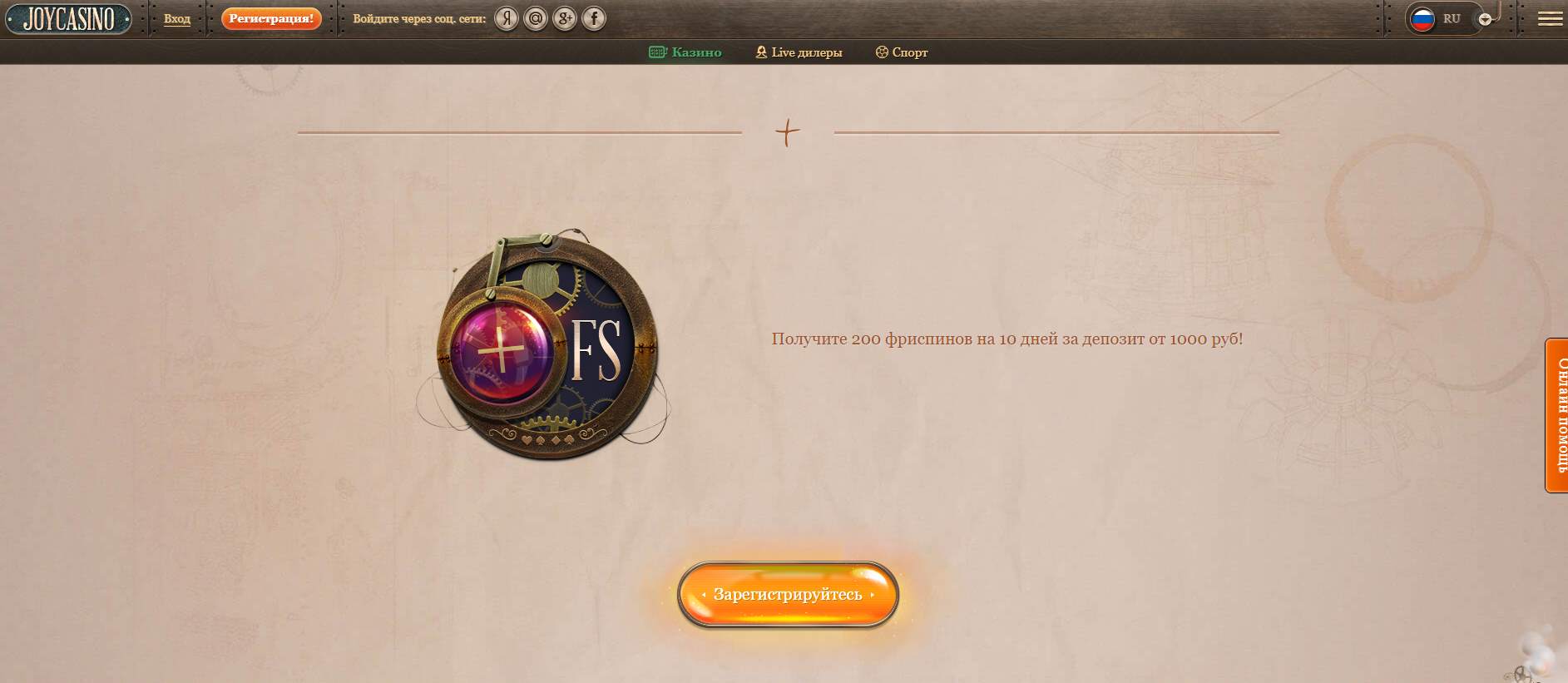 Регистрация в JoyCasino