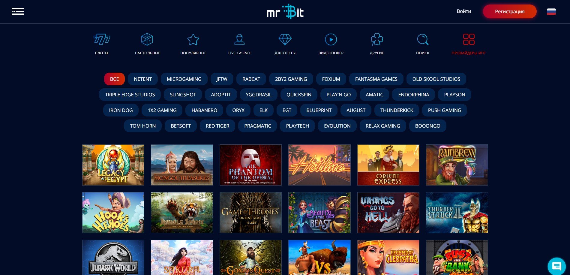 Не смотря на то, что в игорном заведении Mr Bit уже насчитывается больше 2.500 азартных развлечений, регулярно гемблерам презентуются новинки от более, чем 30 топовых провайдеров. Абсолютно каждая забава может похвастаться высоким показателем пейаута, а за честностью розыгрышей будут следить автономные генераторы случайных чисел.