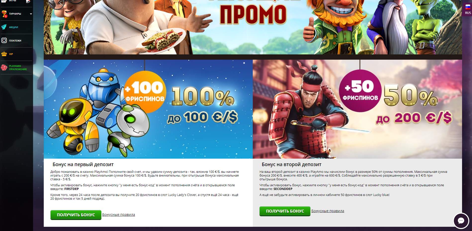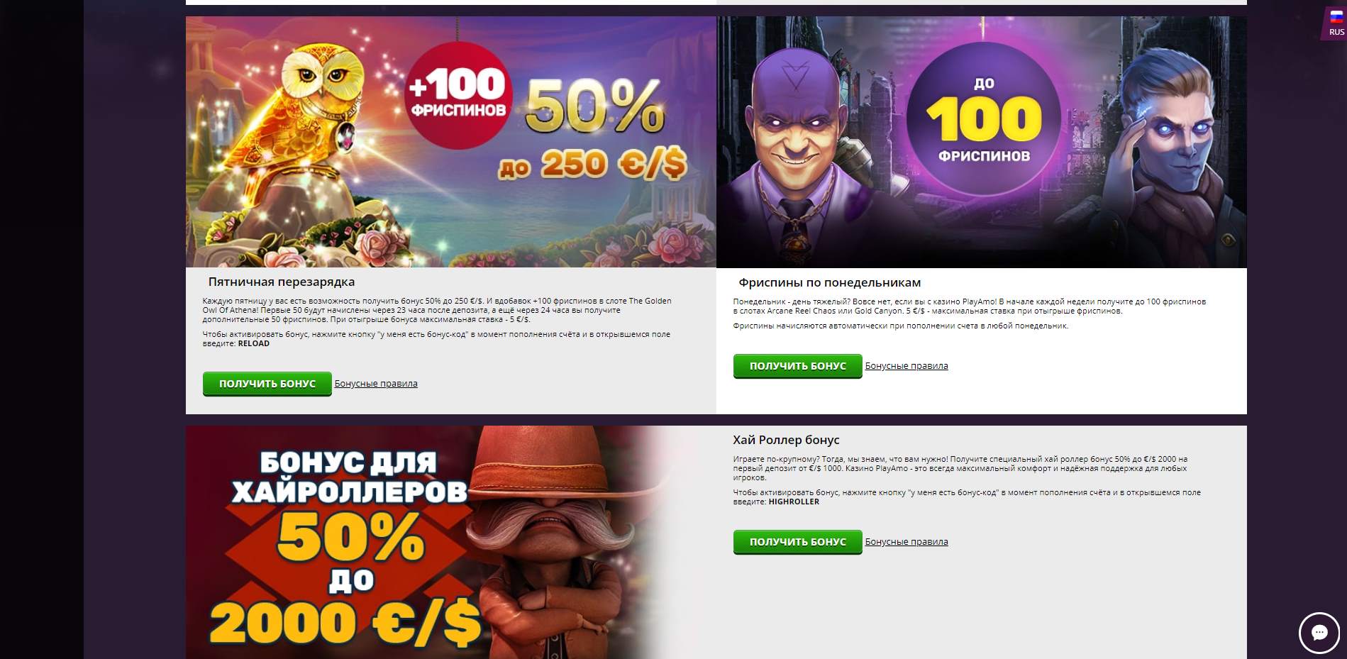 Помните, что для активации всех бонусов требуется бонусный код.
