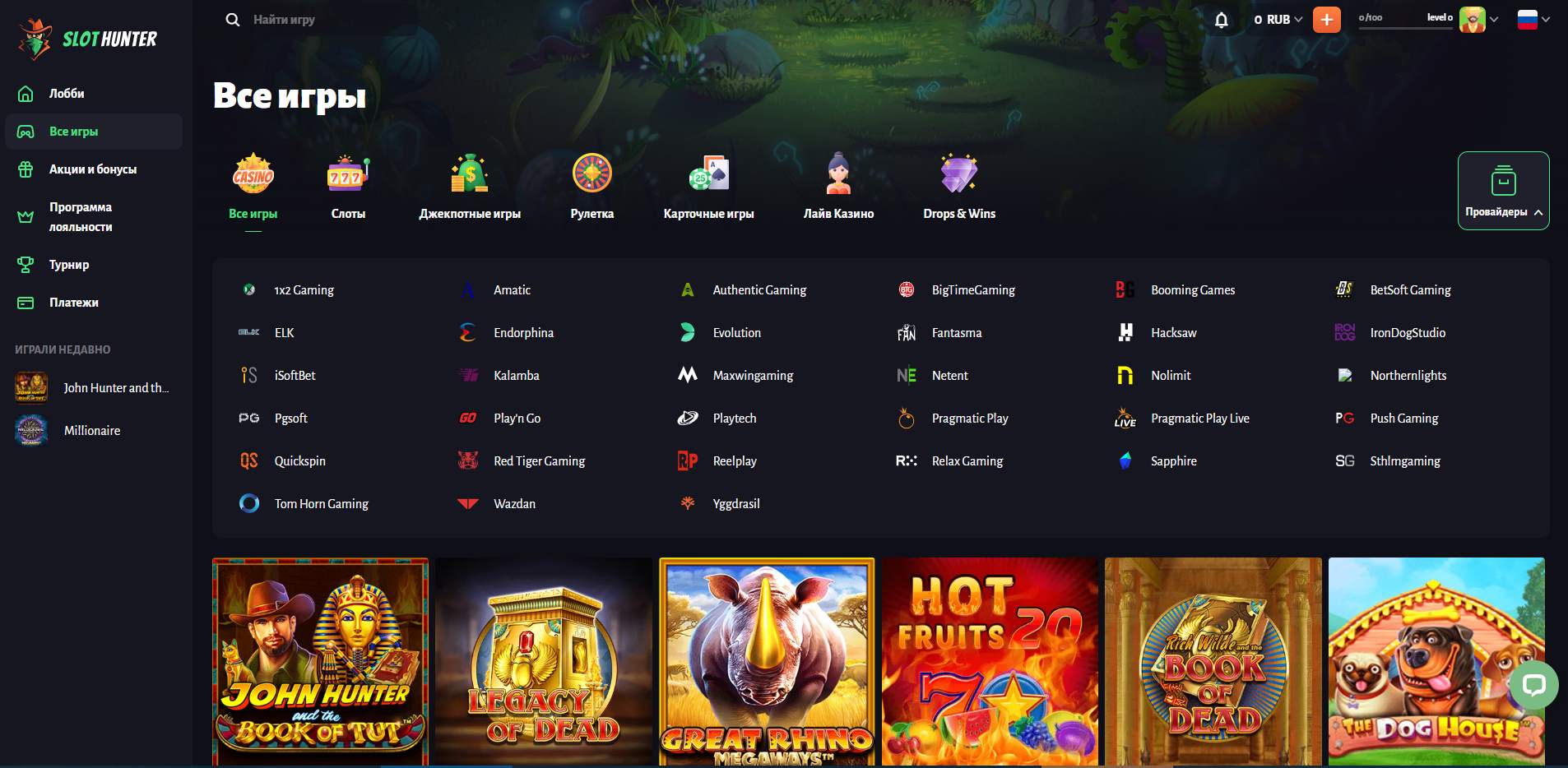Игры и провайдеры в казино Slot Hunter