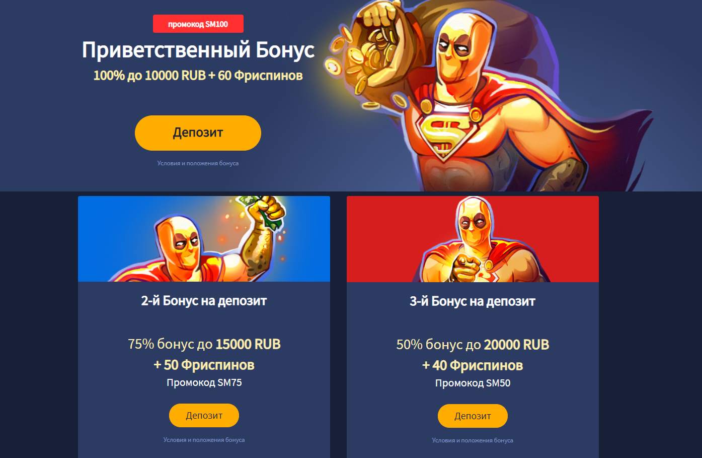 Приветственный бонус в казино Slotman casino охватывает три депозитные сделки, предоставляя вам различную сумму и бонусный матч для вашего 1-го и 3-го депозита. Помимо этого, однако, есть еще несколько других промо-акций и бонусов, которые заслуживают более пристального изучения.